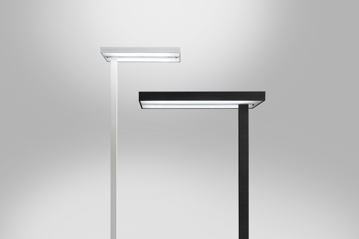 Spectrasol Terra is a procognitive standalone office lamp that fits into a wide range of interiors thanks to its minimalist design. Terra emits directly and indirectly full-spectrum and patented LED procognitive light. Terra combines the luminous comfort of indirect lighting with the high energy efficiency of the direct light component. The direct to indirect components ratio is adjustable by a button.